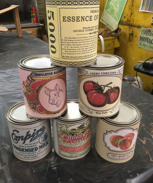 Food tin labels created in Adobe Photoshop for Baltimore Center Stage's 2019 production of Men on Boats